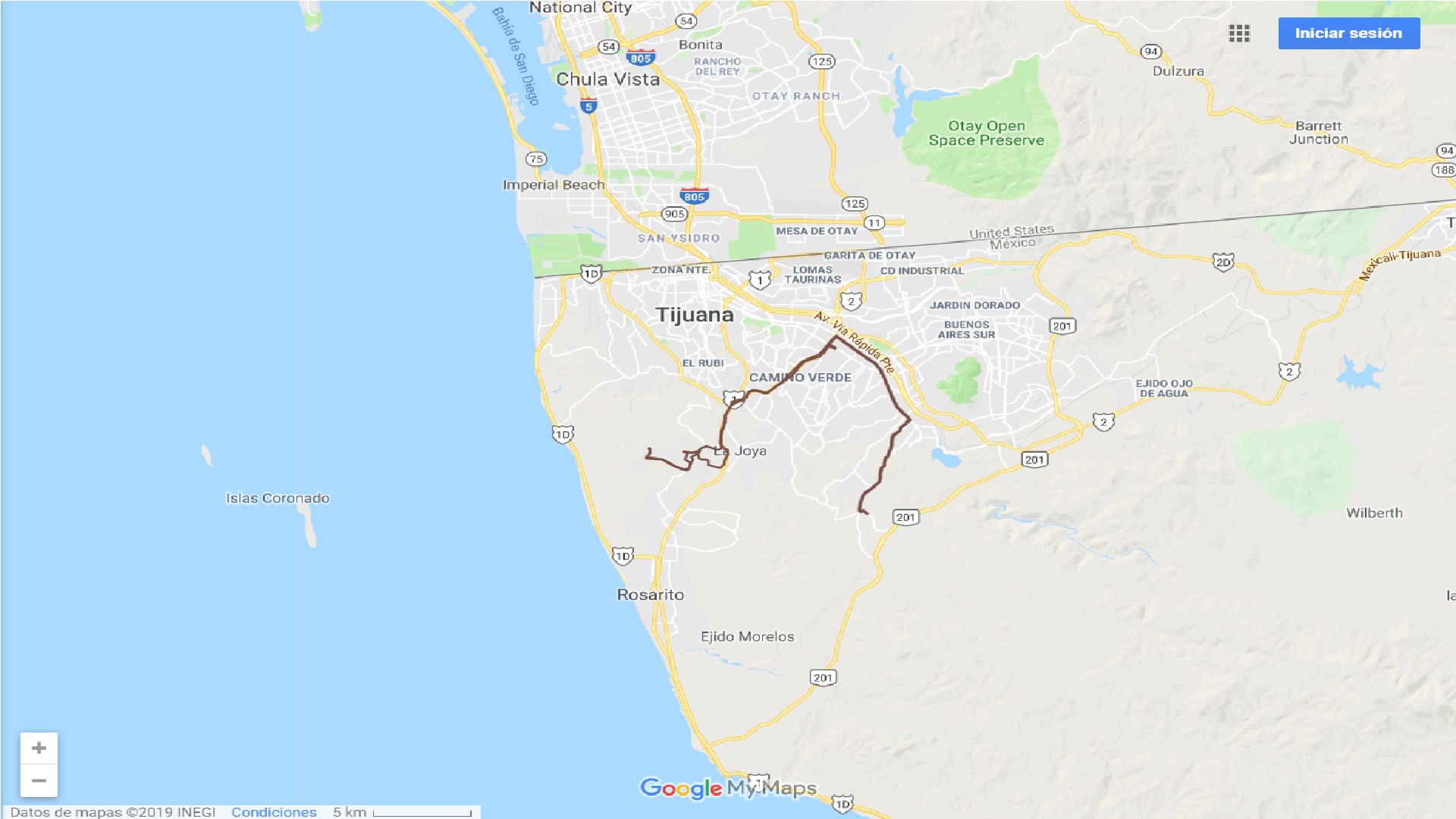 Mapa de Rutas de Calafias en Tijuana.
